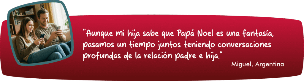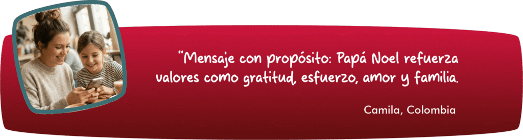 Una experiencia conversacional donde tu hijo puede hablar con Papá Noel, compartir sus sueños y recordar lo más importante de la Navidad: la familia, el amor y la gratitud.